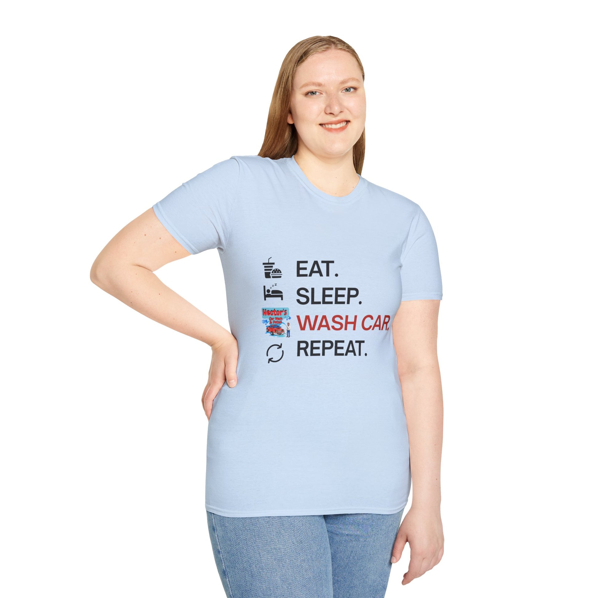 Hector's 'Eat Sleep Wash Car Repeat' (Black Lettering) Unisex Soft Style T-Shirt